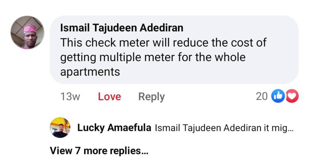 The meter also reduces the cost of getting multiple prepaid meters for houses with multiple flats. This is a good deal for house owners and house managers.