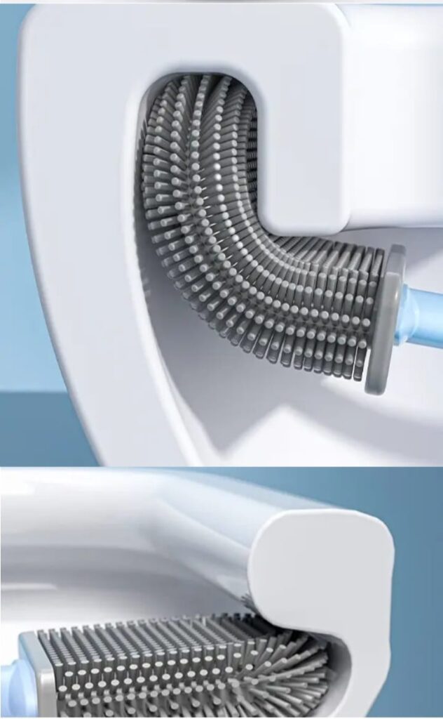The soft, flexible silicone bristles bend easily and clean under the rim and tight corners effortlessly